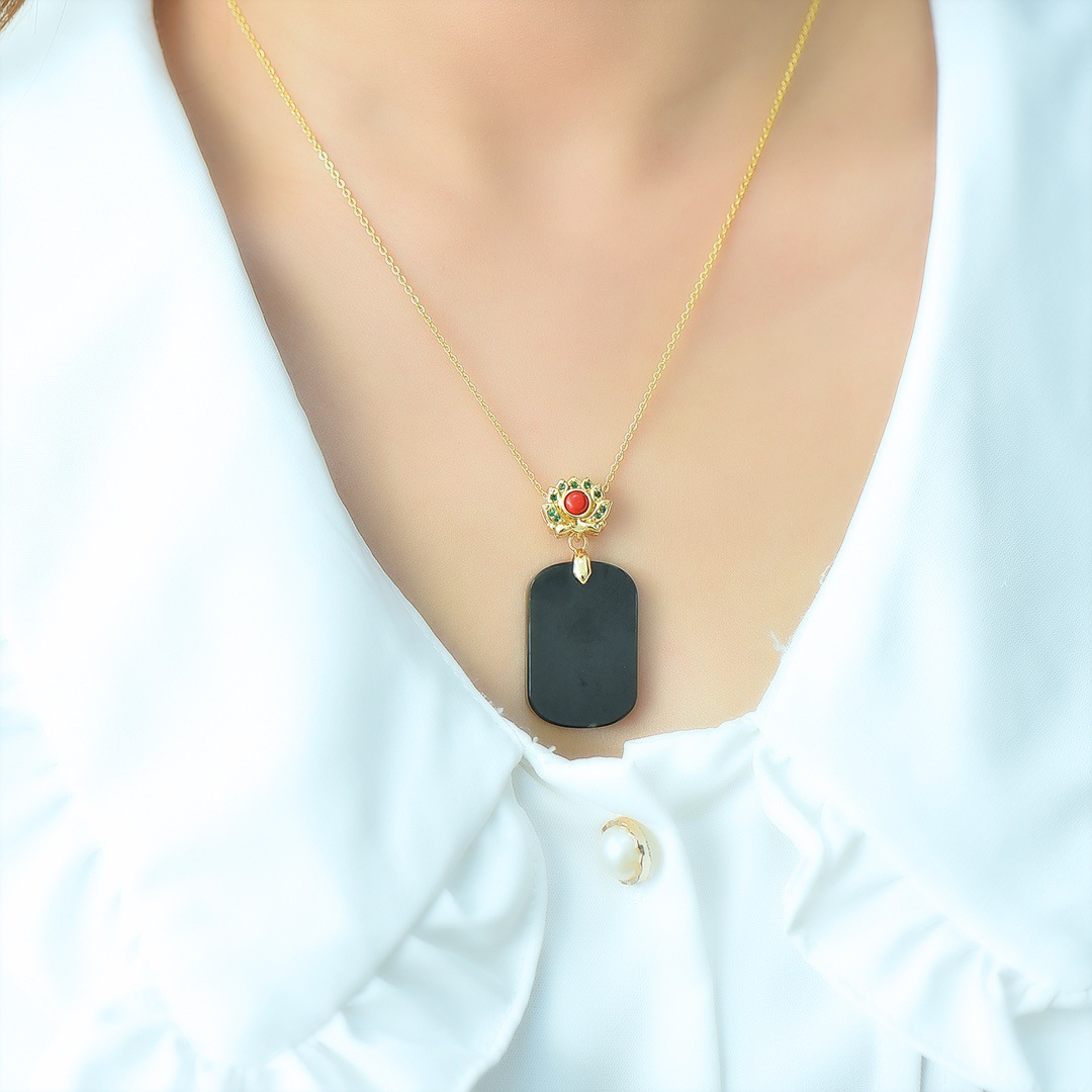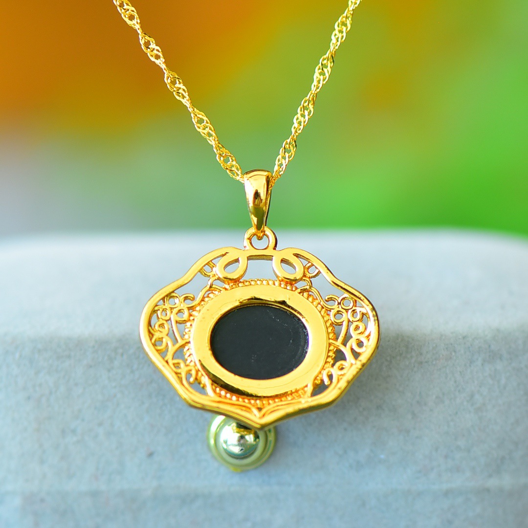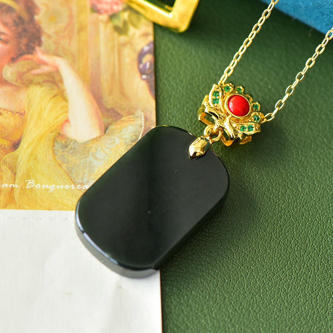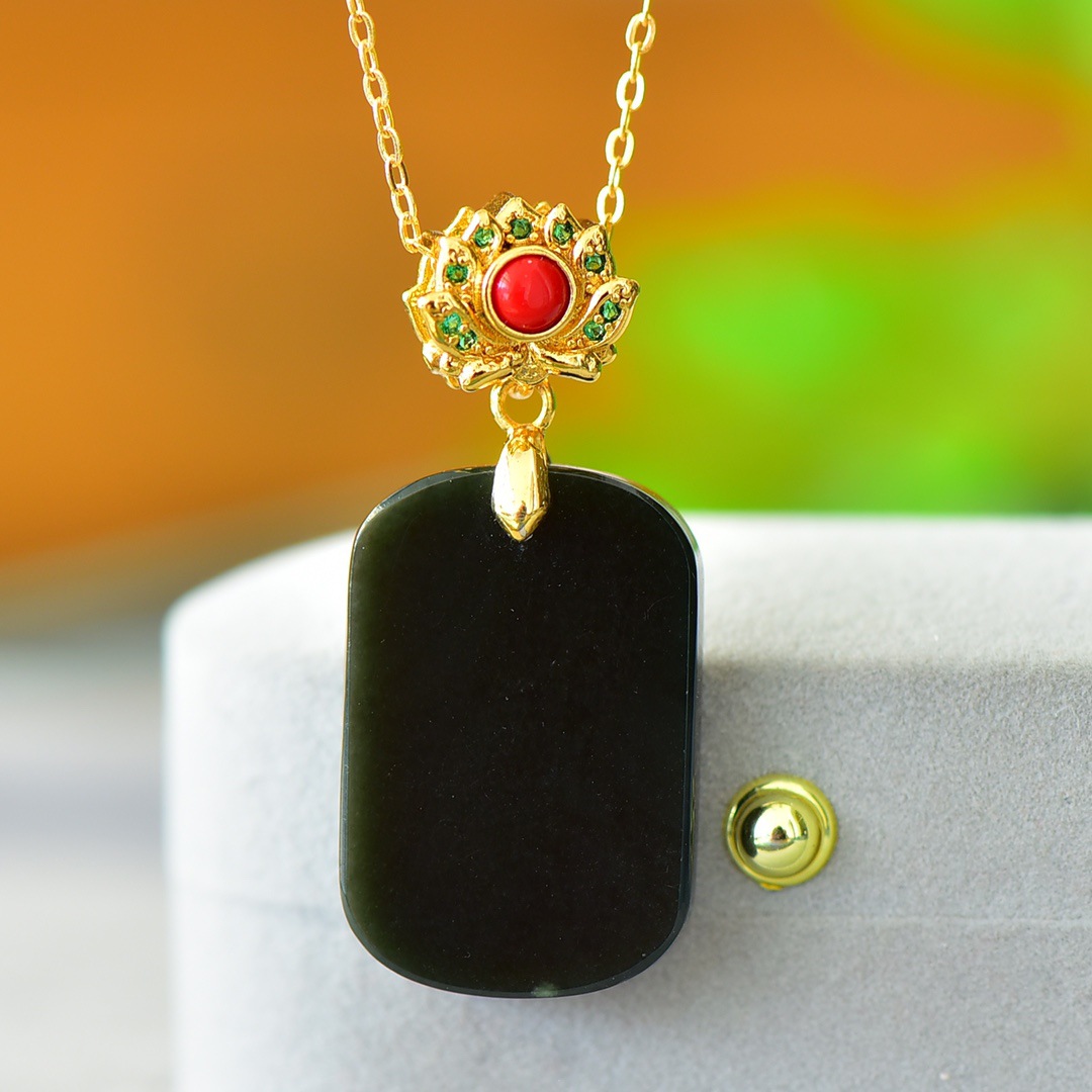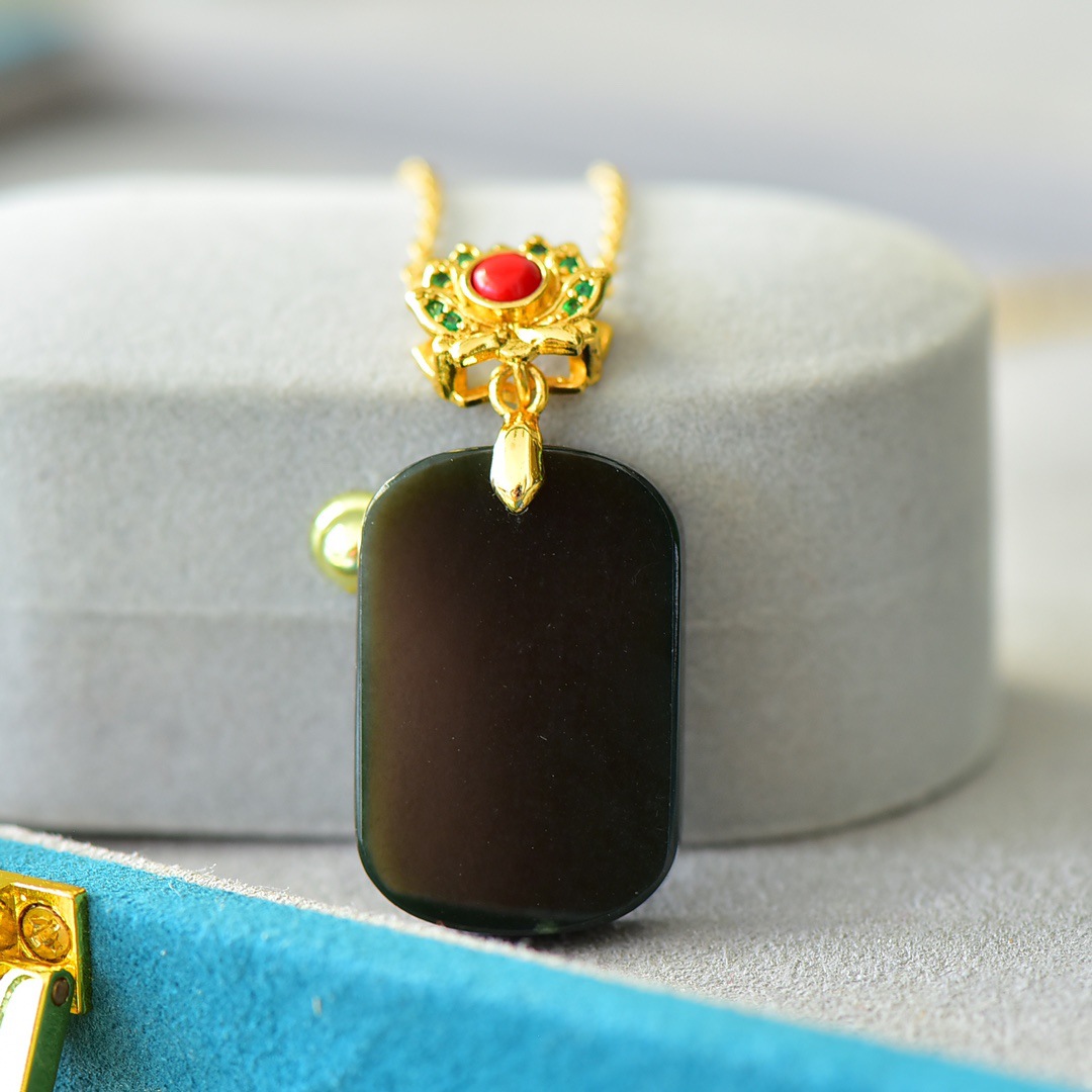 Copper Inlaid Natural Hetian Jade Gray Jade Flat Stylish Pendant Ink Blue Jade Jadeware Pendant Live Supply