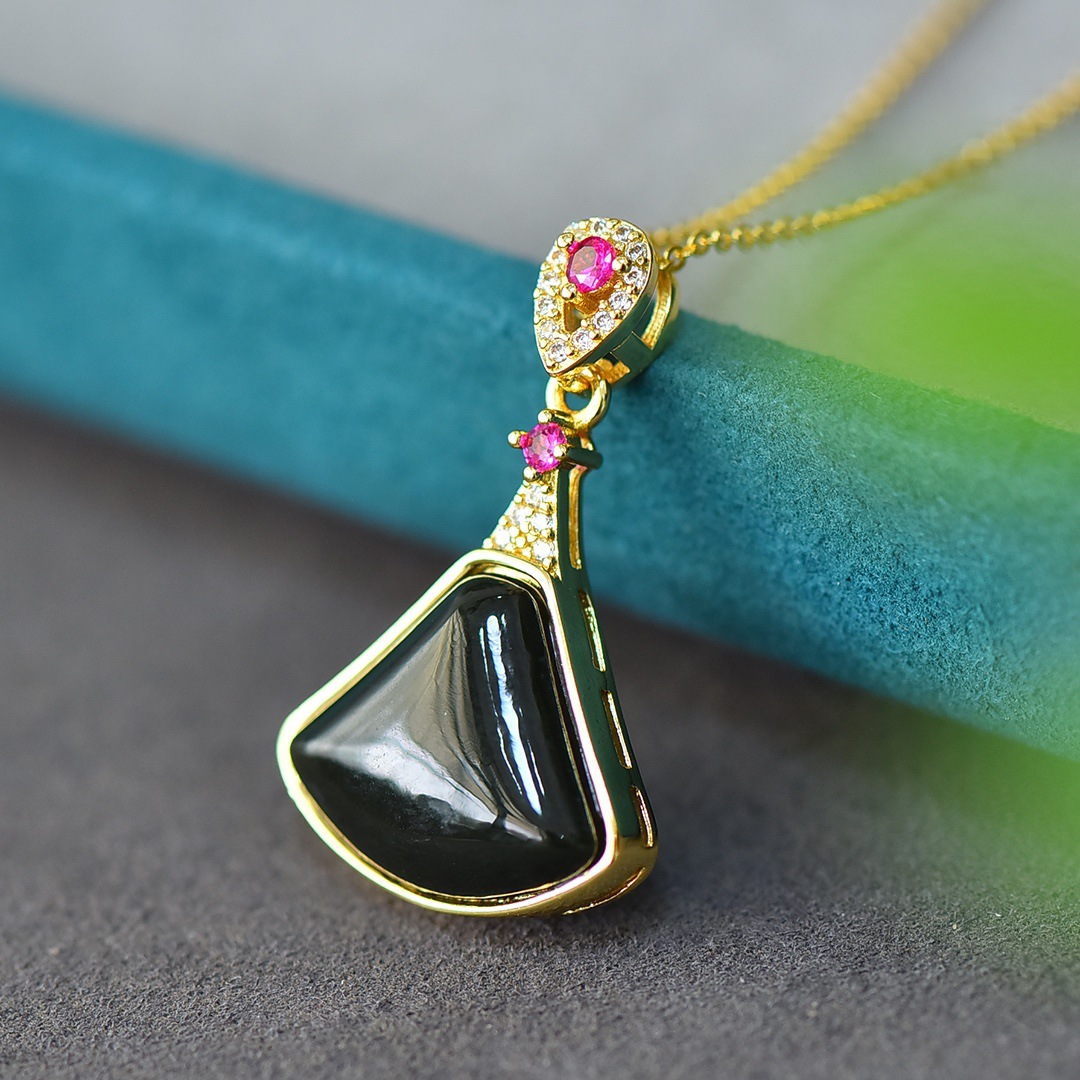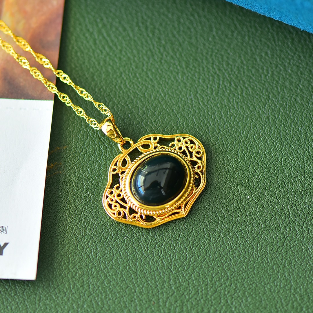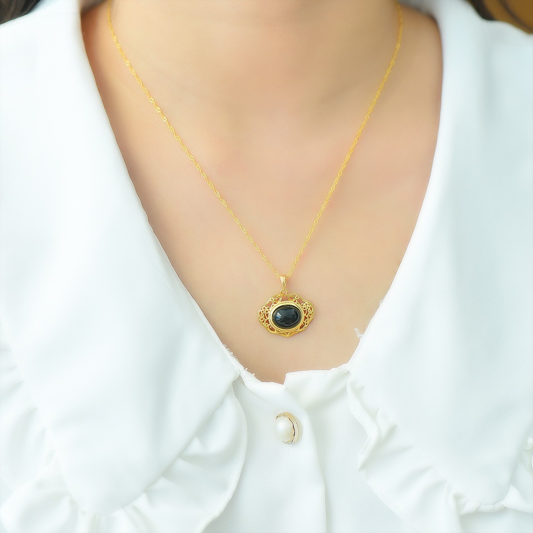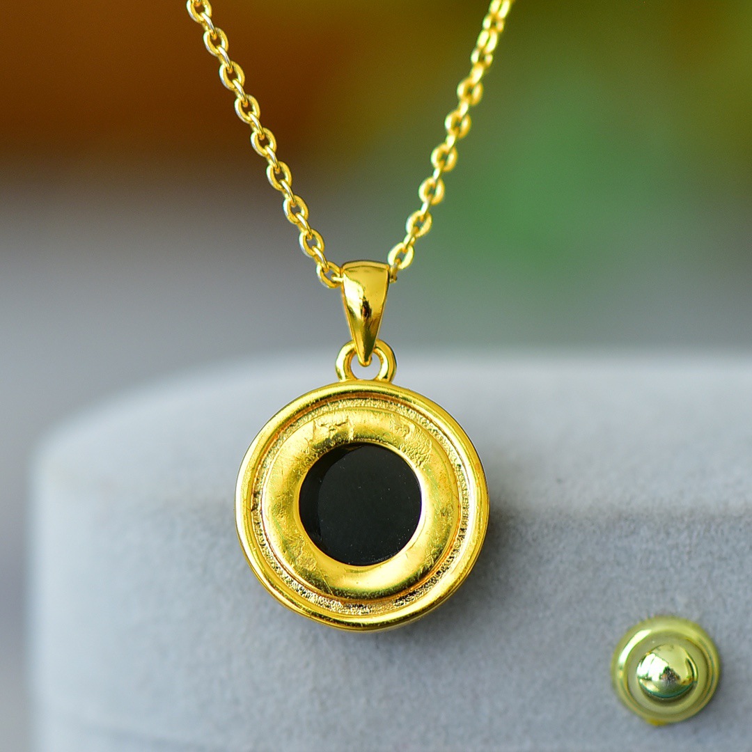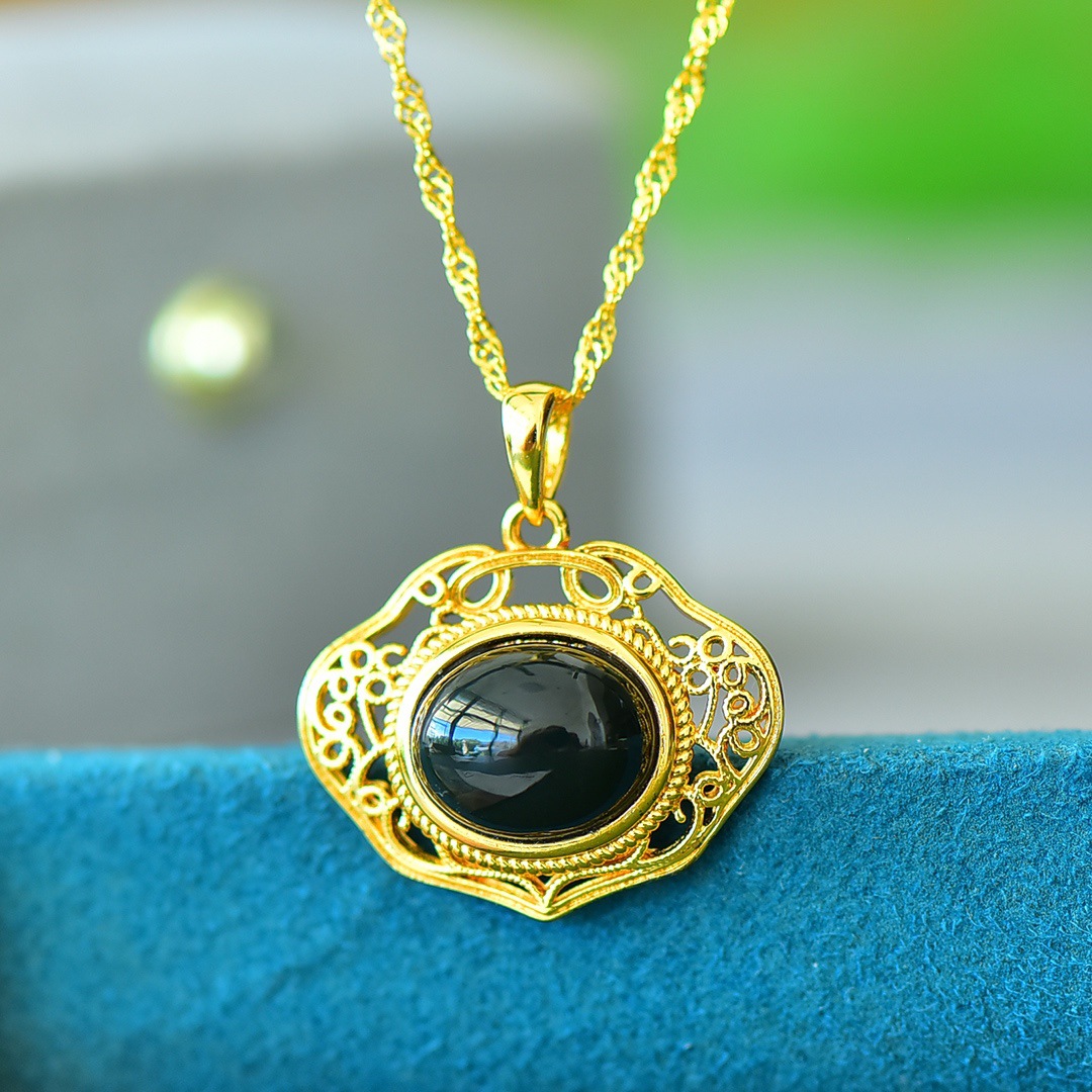 Copper Inlaid Natural Hetian Jade Gray Jade Flat Stylish Pendant Ink Blue Jade Jadeware Pendant Live Supply