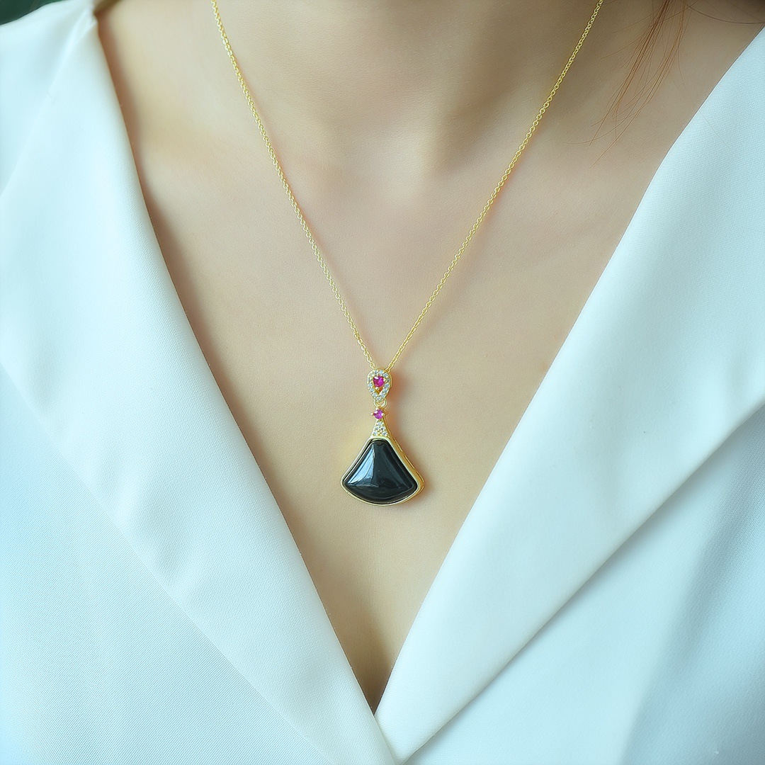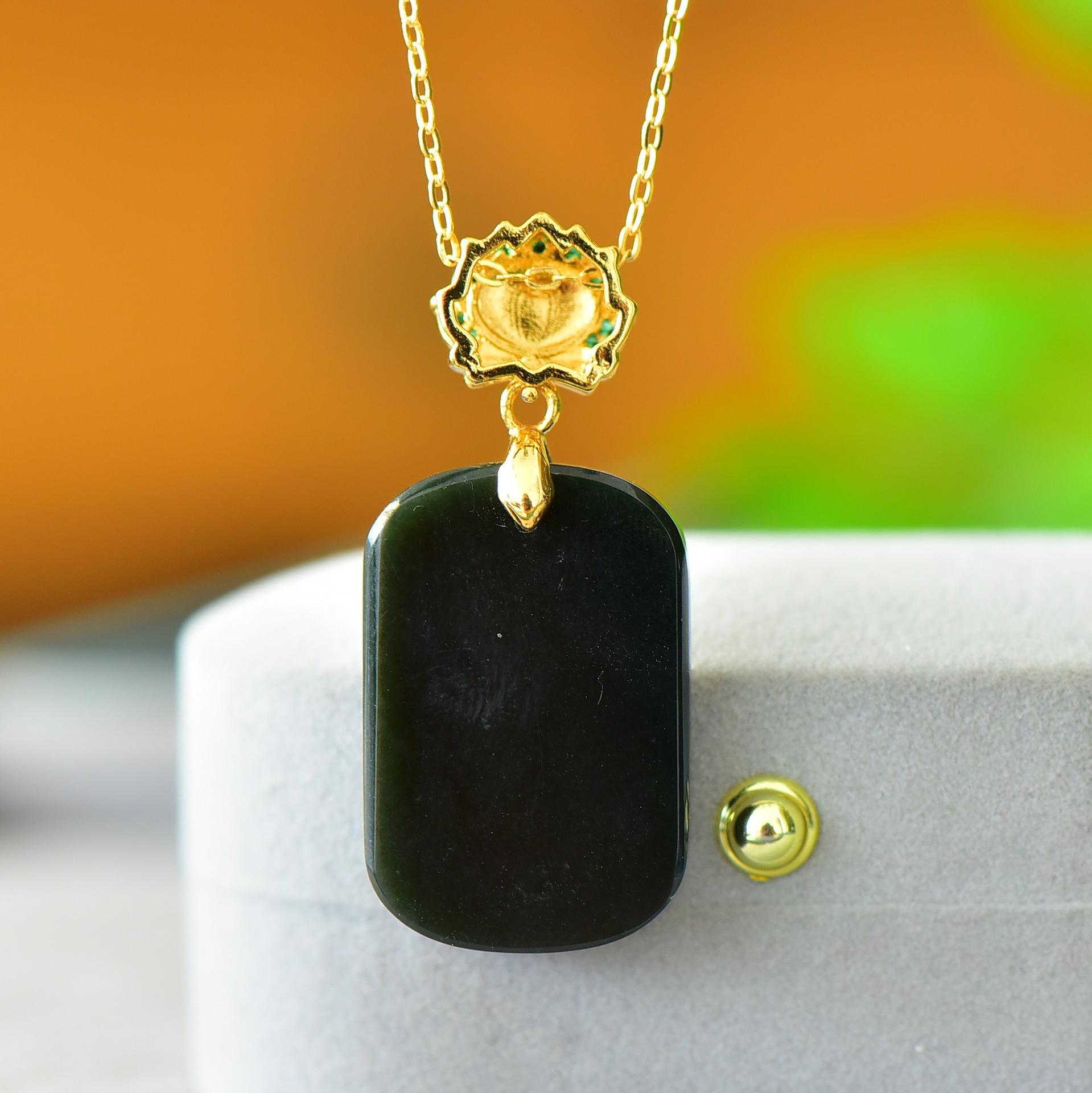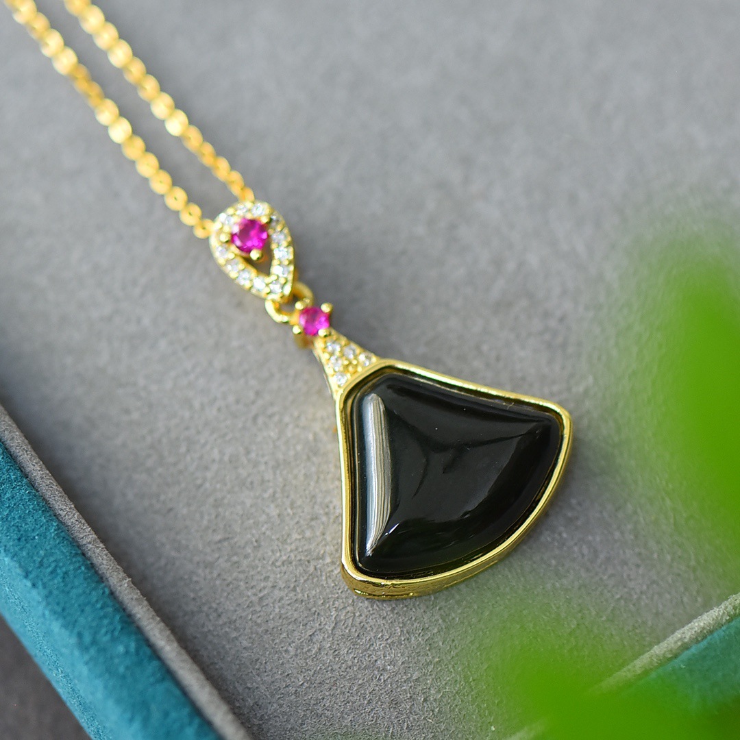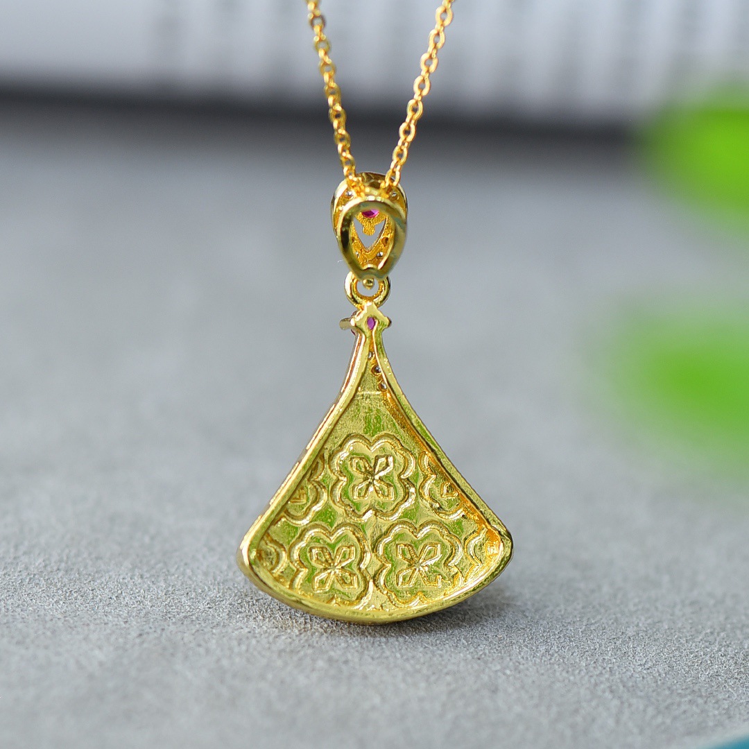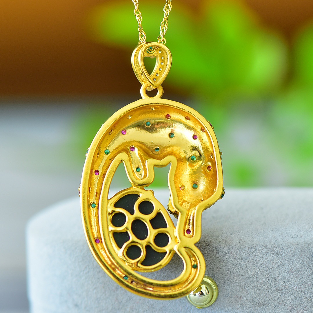 Copper Inlaid Natural Hetian Jade Gray Jade Flat Stylish Pendant Ink Blue Jade Jadeware Pendant Live Supply